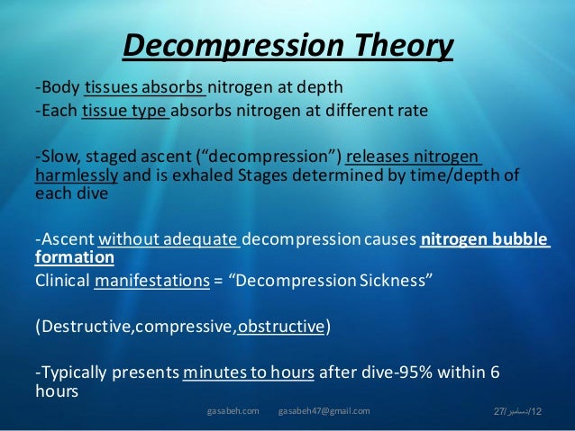 DCS results from bubbles in. Notable fi ndings included clinical signs and symptoms of shock with pale clammy skin thready pulse and lethargy. Washing nitrogen out of the tissues.
