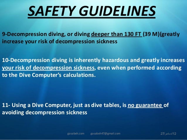 11272019 To prevent decompression sickness most divers make a safety stop for a few minutes before ascending to the surface. There are some safety rules that they adhere to in order to not get sick. The diagnosis is more certain after a provocative depth-time exposure one that is close to or exceeds limits prescribed by dive tables or computers than after a mild.