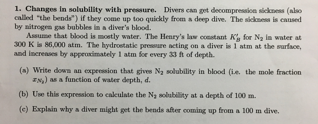 Solved 1 Changes In Solubility With Pressure Divers Can Chegg Com