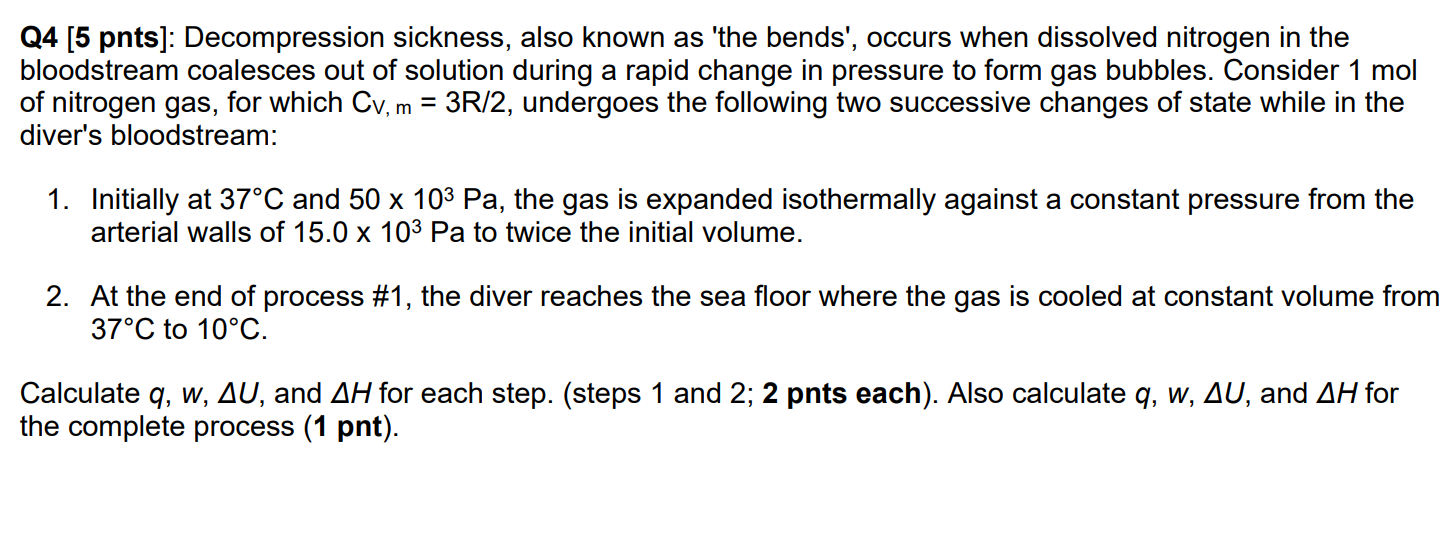 Solved Q4 5 Pnts Decompression Sickness Also Known As Chegg Com